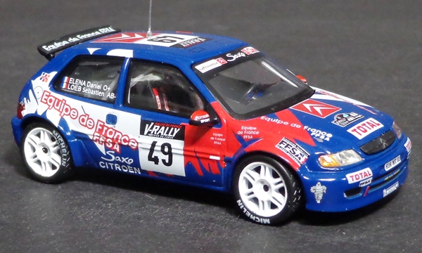 | Citroën Saxo Kit Car Puras / Marti Rallye Monte-Carlo 1999 - DNF Altaya - 1/43 | Citroën Saxo Kit Car Loeb / Elena Tour de Corse 1999 - 19th (Class Winner) Altaya - 1/43 |